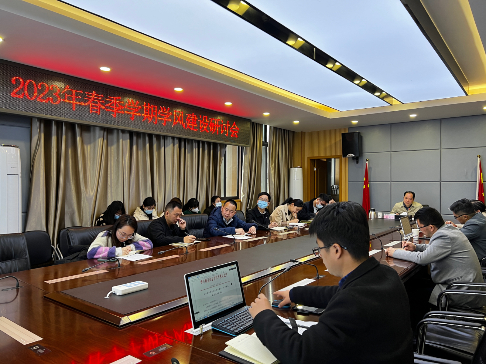 为深入学习贯彻党的二十大精神,进一步落实立德树人根本任务,提高人才培养质量,探索学风建设新途经、新方法,3月20日上午,学校在第五会议室召开2023年学风建设研讨会,各二级学院、内江校区管委会党总支书记,全体专职辅导员,学生处、团委相关工作人员参会。党委副书记刘昊君出席会议并讲话。