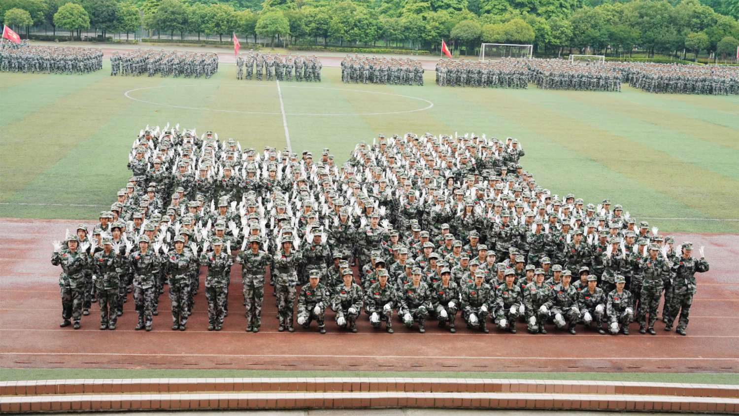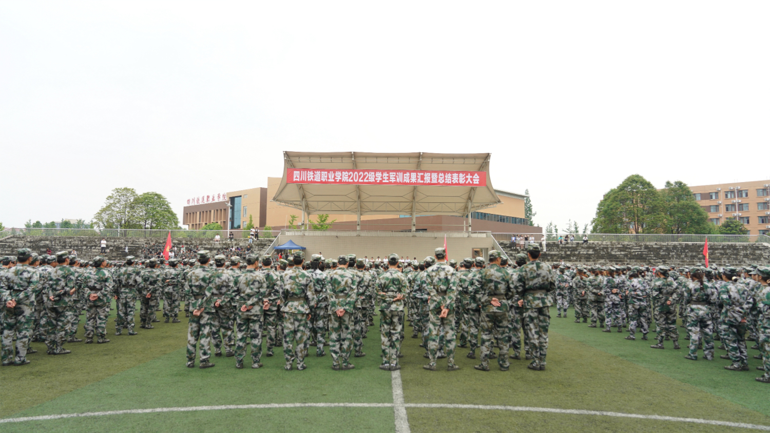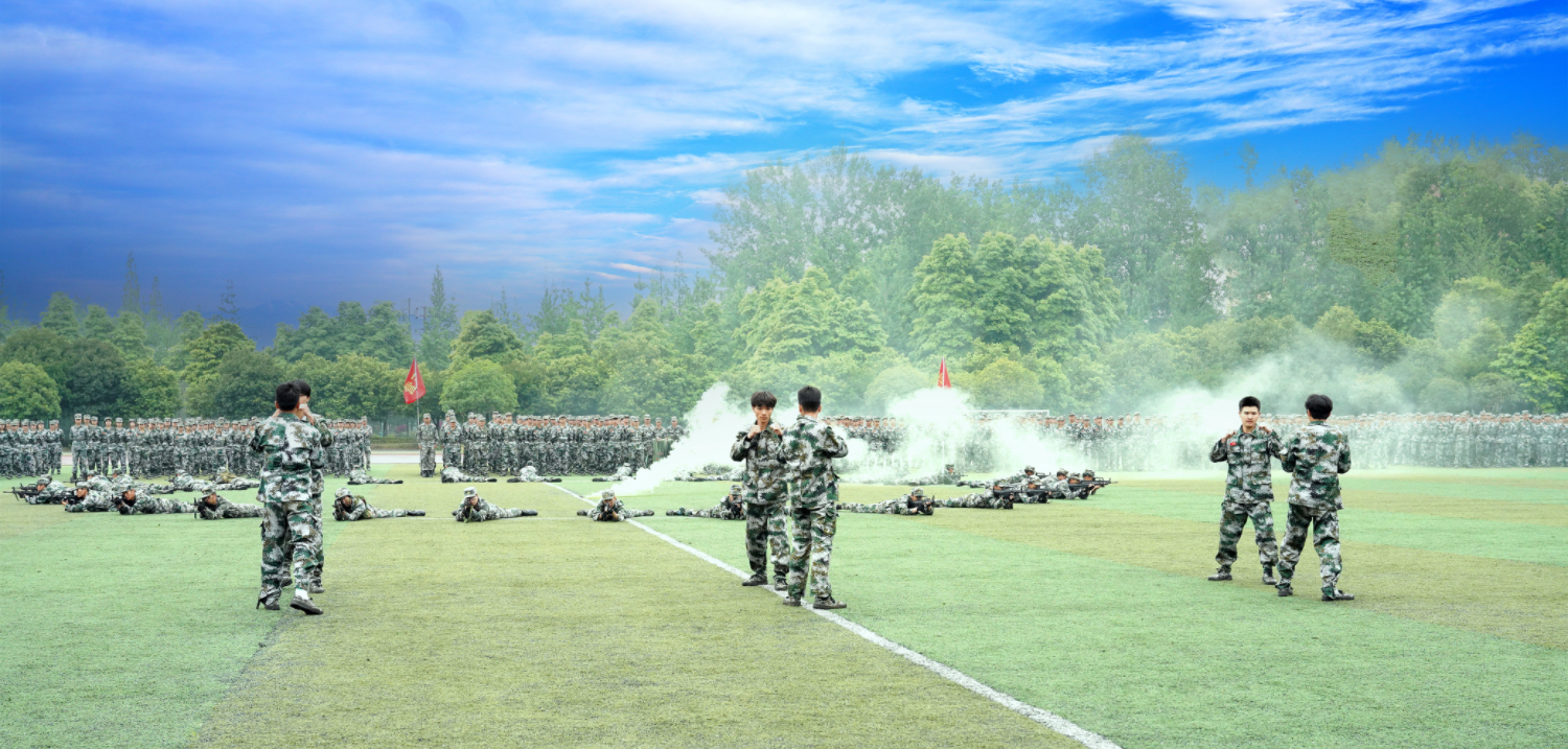 庄严的升国旗仪式后,军训汇报演出正式开始。战术小队和匕首术表演,动作干净利落、虎虎生风;分列式、军体拳和军体棍表演,动作整齐划一、气势震撼;花式表演队不断变换的“歼20” “校徽”“帆船”“长城”造型,充分展现了川铁学子昂扬向上、朝气蓬勃的良好精神风貌。历经十余天军事训练的同学们,目光炯炯、军姿挺拔、意志坚毅,以不畏苦累、接续奋斗的优良作风,圆满完成了各项训练任务。