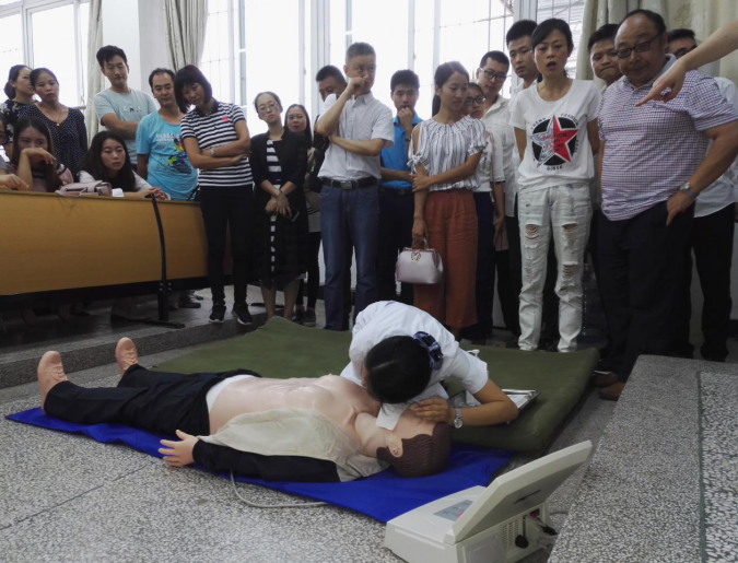 2017年9月26日下午3时,受内江校区教务处邀请,内江市第一人民医院内二科党支部书记、护理部副主任石兵等一行三人对内江校区教师、生活辅导员开展心肺复苏术(CPR)专项技能培训。石主任一行对心肺复苏术的必要性、标准的操作流程进行了耐心细致的讲解,现场示范急救动作,手把手指导老师们掌握操作要领。