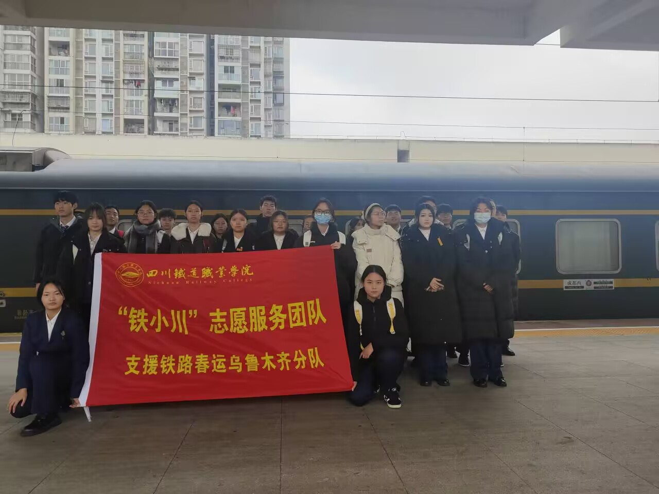 车站志愿服务团队,锦官驿道的平安纽带。春运首日,志愿团队在车站开展“青春志愿 情满旅途”主题安全宣传活动,通过发放手册、现场讲解等方式普及铁路安全知识,成为春运首日的一道亮丽的风景线。志愿服务中,志愿者在成都东站、成都西站、内江北站等枢纽,他们驻守在候车大厅、售票厅、进出站口等关键点位,配合车站工作人员做好秩序维护、旅客引导、解答问询、安全管理等工作,为旅客出行提供便捷舒心的体验。 从巴山蜀水到祖国边疆,从站台票闸到飞驰车厢,在这场春运大考中,学校学生参与志愿服务合计7154人·天次,他们以专业为笔、以铁轨为卷,交出了铁路时代新人的精彩答卷,他们用脚步丈量责任、以服务诠释担当,让学校“铁小川”志愿服务品牌在交通强国坐标系中更加闪亮。 青春心声 铁轨上的成长印记 机车24T1杨宁 当我穿上乘务员制服、踏上绿皮车厢的那一刻,书本上的铁路精神突然有了血肉。即将退休的严师傅在分别时,执意要亲手开启职业生涯的最后一次车门,那句“开到最后一个了”的戏言里,藏着二十年如一日的坚守。我深刻感悟到钢轨绵延处的精神图谱,铁路人的奉献,是数十年默默耕耘后仍要站好最后一班岗的执着;铁路人的情怀,是把每节车厢都当作家的延伸、把每位旅客都视为亲人的细腻,作为新时代铁路接班人,我将带着这份感动继续前行,让“人民铁路为人民”的誓言,永远在千里铁道线上铮铮回响。