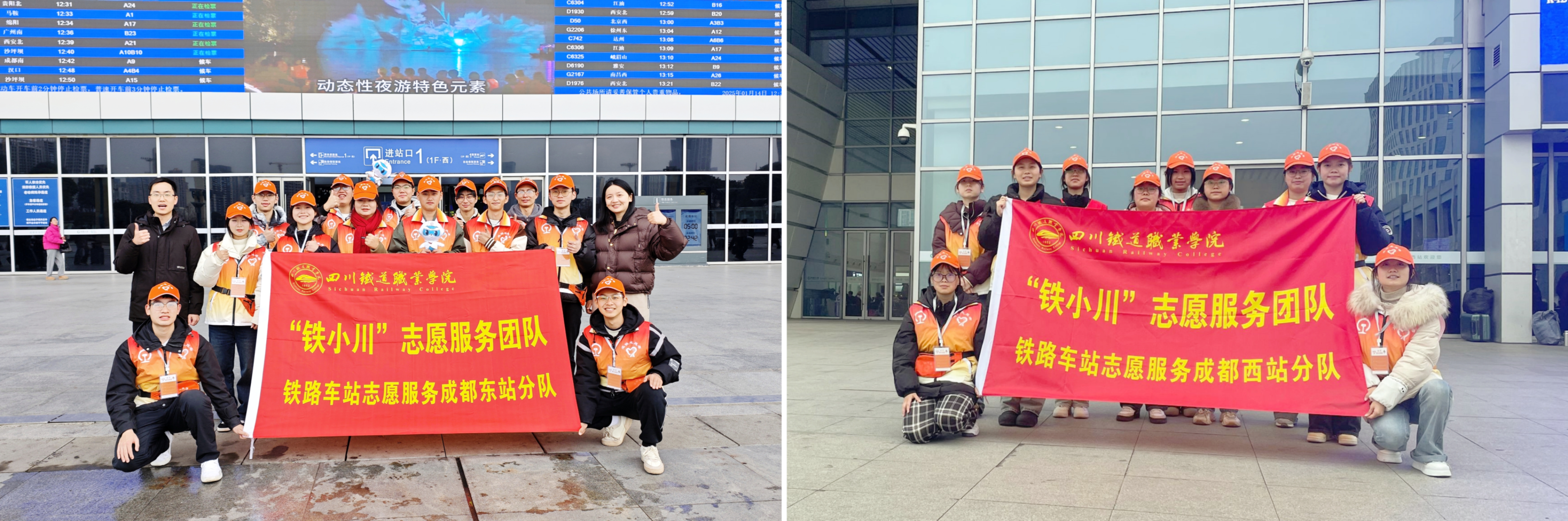 铁轨弦动,汽笛长鸣,南来北往,小川力行。2025年春运期间,学校“祖国再大,我也要助您平安回家”主题春运社会实践暨志愿服务活动,服务于北京、上海、广州、扬州、乌鲁木齐车队,以及成都东站、成都西站、内江北站枢纽,500余名志愿者和指导老师用青春热情温暖了百万旅客的归途,用专业素养在八纵八横铁路网中弘扬践行“厚德力行 博道通术”校训。