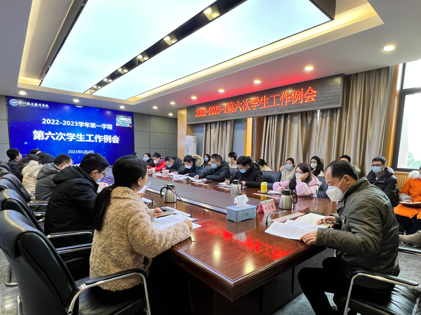 1月4日下午,学校在第五会议室召开2022年秋季学期第6次学生工作例会,会议以线上线下融合方式开展。党委副书记刘昊君出席会议并讲话,会议由党委学生工作部部长朱俐主持。