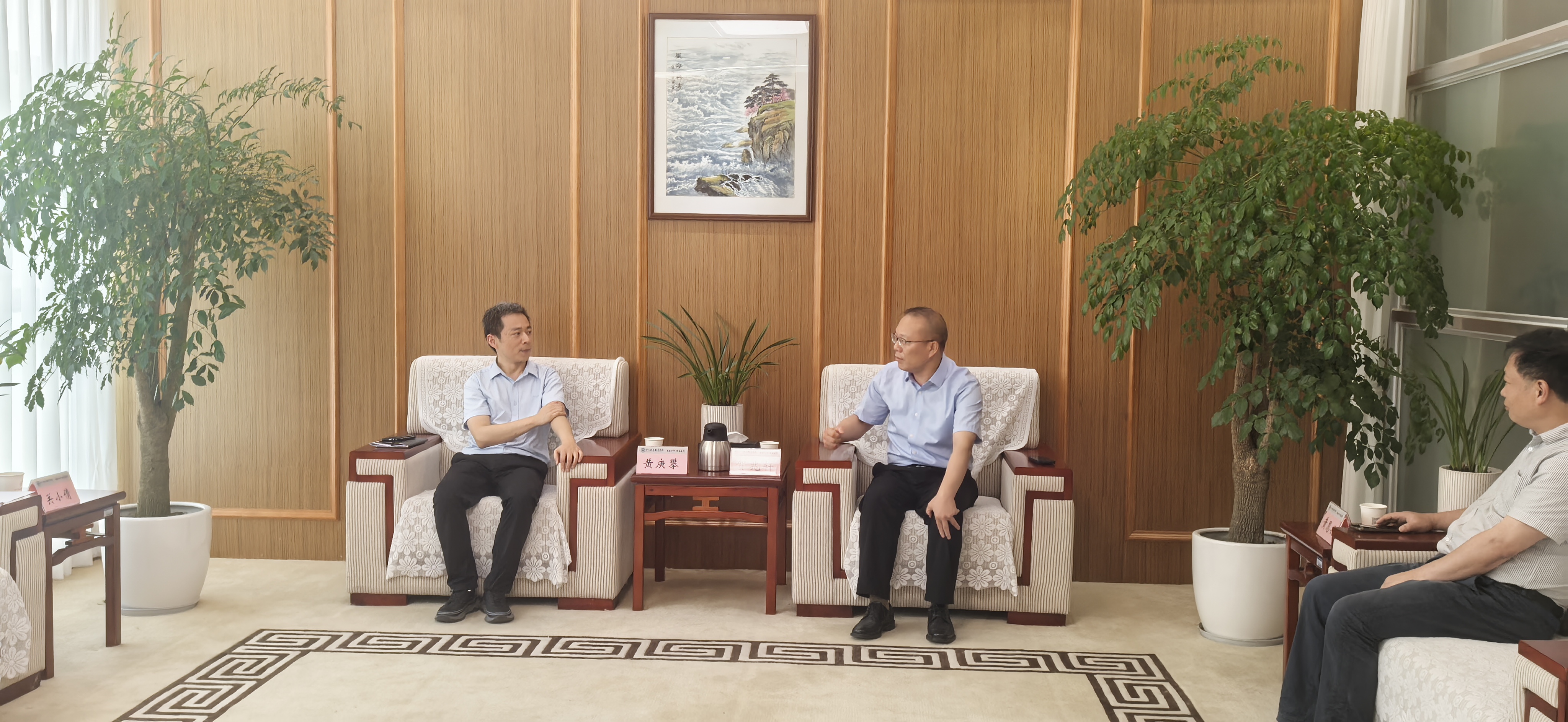 6月5日,学校与新都高新技术产业园区管委会在成都校区签订合作协议。签约仪式前,学校党委书记贺兆轩与新都高新技术产业园区党工委副书记、管委会副主任黄庚攀等领导就深化校地合作、服务协同发展进行座谈交流。学校党委副书记、校长赖芳,党委委员、副校长黄恩兴,新都高新技术产业园区党工委委员、成都市现代制造职业技术学校党委书记关小倩,新都高新技术产业园区管委会企业服务部部长徐文军等领导出席签约仪式。