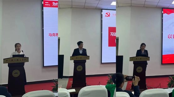 会议集中组织观看了习近平总书记在中国人民大学考察期间以及总书记在庆祝中国共产主义青年团成立100周年大会上的重要讲话;思政部王彩霞同志以《用马克思主义为大学生青春之路导航》为题为与会人员上了一堂生动的思政课;学生处李旗同志和校团委易诗同志分别以《以“四气”培养学生》和《牢记领袖嘱托 勇担青春使命》为题作了交流发言,与会代表也就会议学习内容作了现场交流发言。