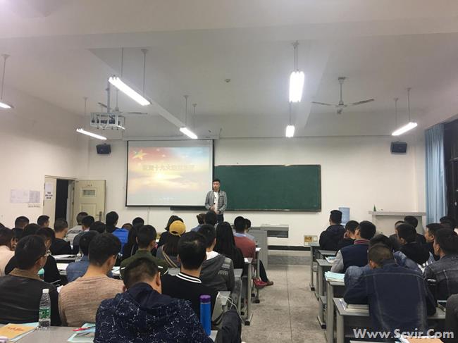 图:学院领导在教工之家集中收看十九大开幕会,学习习总书记的大会报告。