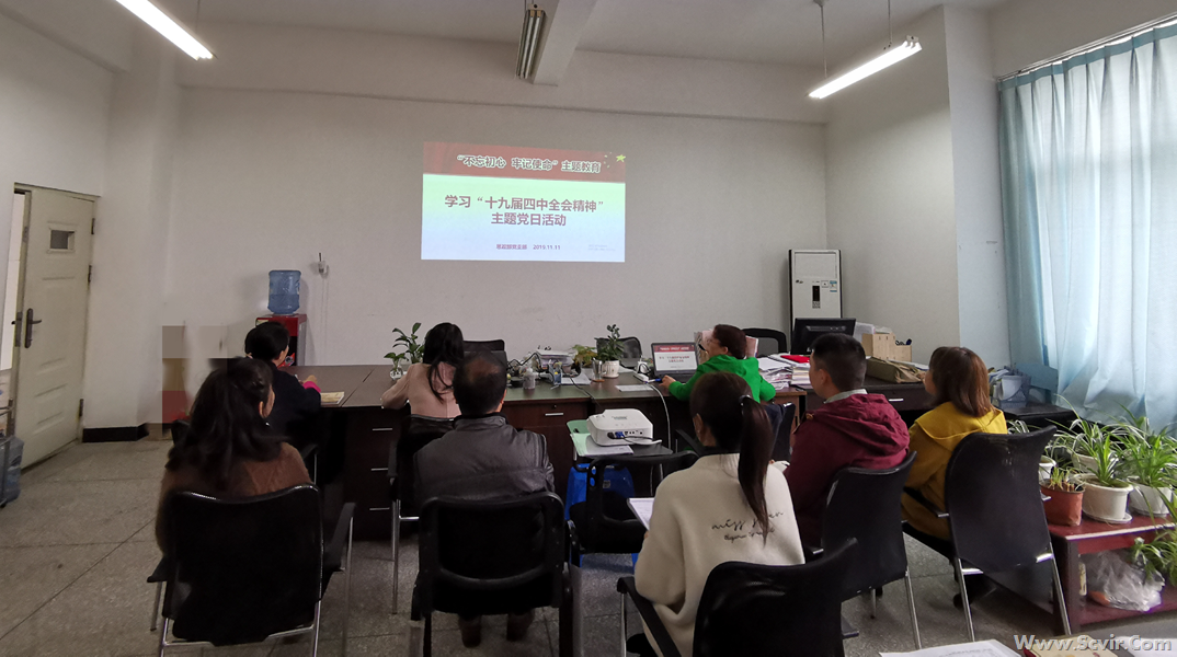 中国共产党第十九届中央委员会第四次全体会议于2019年10月28日到31日在京召开。为深入学习贯彻党的十九届四中全会精神。思政党支部于11月11日组织全体党员教师在2404教室进行学习。